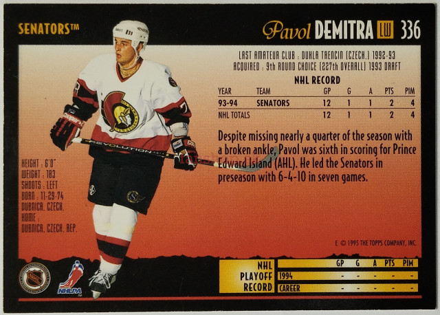 1994-95 O-Pee-Chee Premier #336 Pavol Demitra