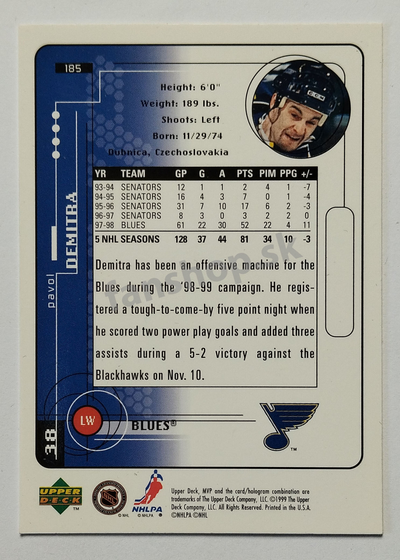 1998-99 Upper Deck MVP #185 Pavol Demitra