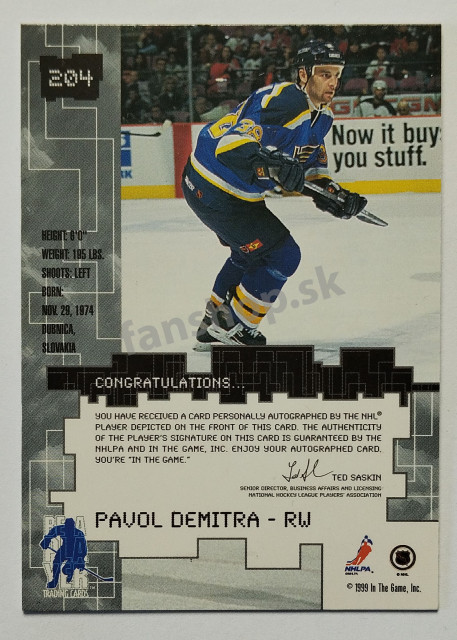 1999-00 Be a Player Millennium Signature Series Autographs #204 Pavol Demitra