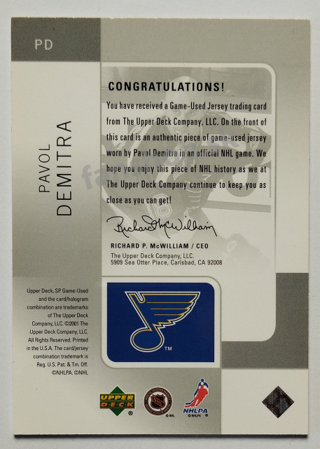 2000-01 SP Game Used Tools of the Game #PD Pavol Demitra