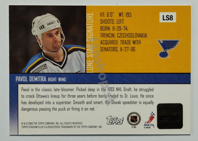 2000-01 Stadium Club Lone Star Signatures #LS8 Pavol Demitra