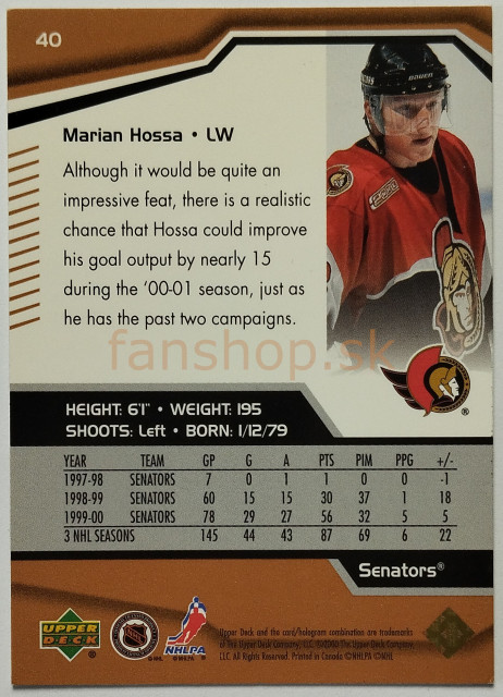 2000-01 Upper Deck Black Diamond #40 Marián Hossa