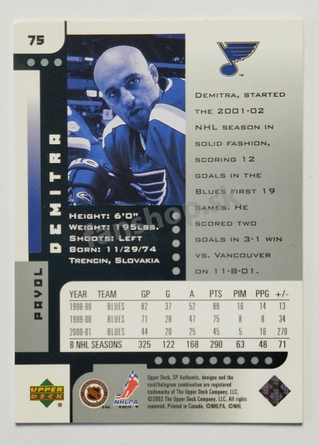 2001-02 SP Authentic #75 Pavol Demitra
