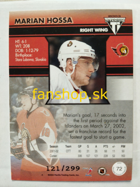 2002-03 PAcific Private Stock Titanium Red #72 Marián Hossa SN 121/299