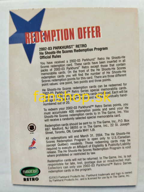 2002-03 Parkhurst Retro He Shoots-He Scores Points #NNO Marián Hossa