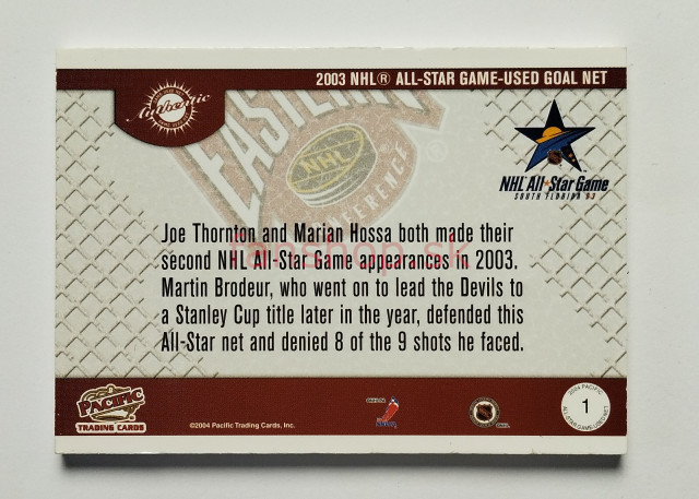 2003-04 Pacific 2003 NHL All-Star Fantasy Nets #1 Joe Thornton / Martin Brodeur / Marián Hossa SN 144/499