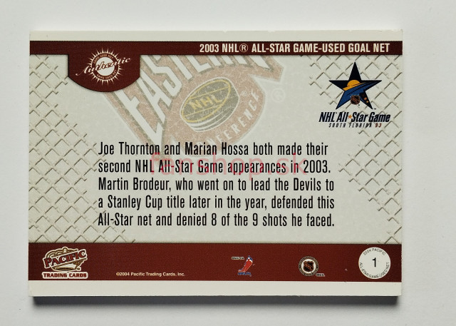 2003-04 Pacific 2003 NHL All-Star Fantasy Nets #1 Thornton/Brodeur/Hossa SN 161/499