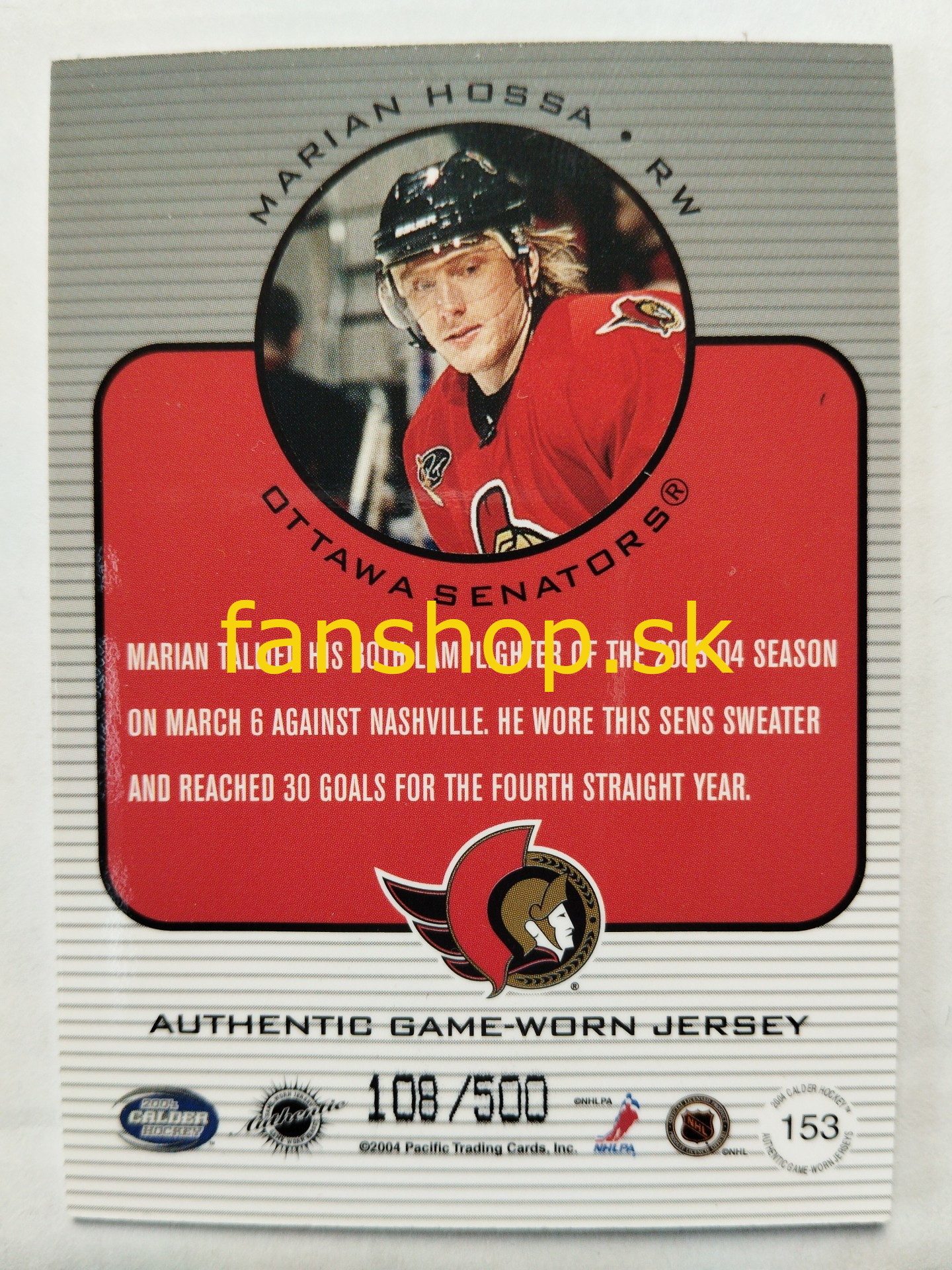2003-04 Pacific Calder #153 Marián Hossa SN 108/500