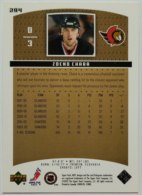 2003-04 Upper Deck MVP Gold Script #294 Zdeno Chára SN 16/25