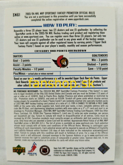2003-04 Upper Deck MVP SportsNut #SN61 Marián Hossa