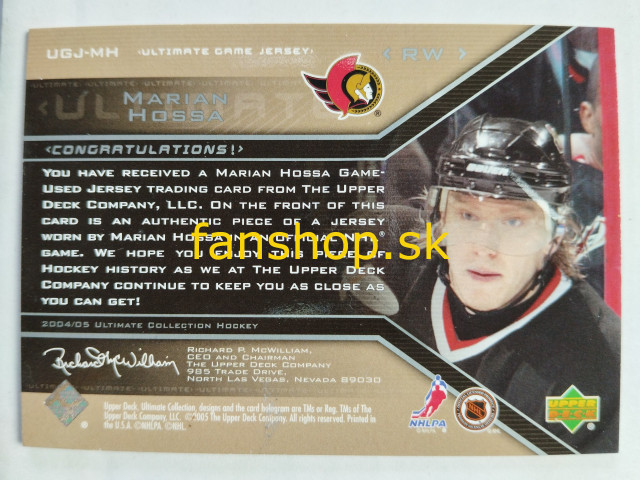 2004-05 Upper Deck Ultimate Collection Jerseys #UGJ-MH Marián Hossa SN 091/250