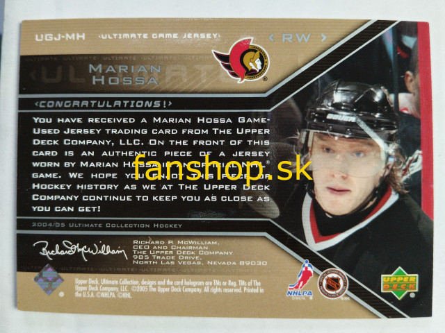 2004-05 Upper Deck Ultimate Collection Jerseys #UGJ-MH Marián Hossa SN 186/250