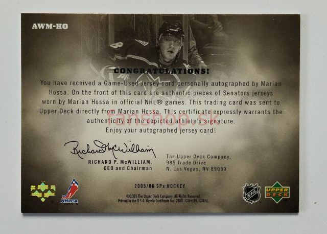 2005-06 SPx Winning Materials Autographs #AWM-HO Marián Hossa SN 19/50