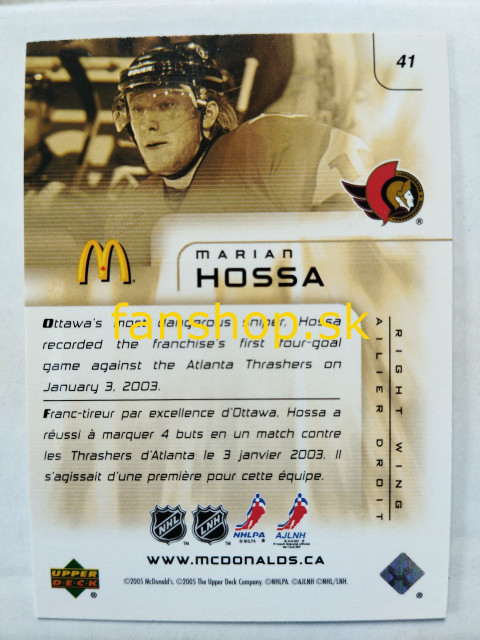 2005-06 Upper Ddeck McDonald's #41 Marián Hossa