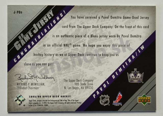 2005-06 Upper Deck Game Jerseys Series One #J-PDE Pavol Demitra