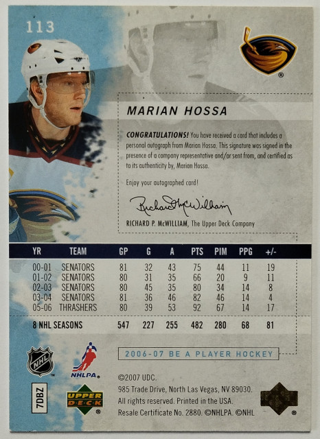 2006-07 Be a Player Autographs #113 Marián Hossa SN 05/10