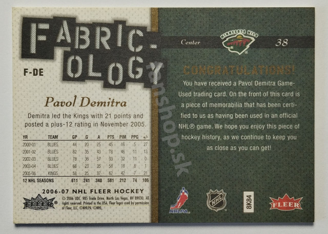 2006-07 Fleer Fabricology #F-DE Pavol Demitra