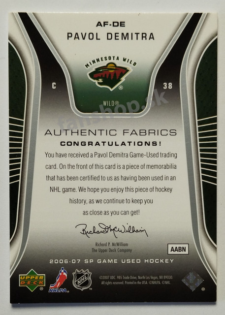 2006-07 SP Game Used Authentic Fabrics #AF-DE Pavol Demitra