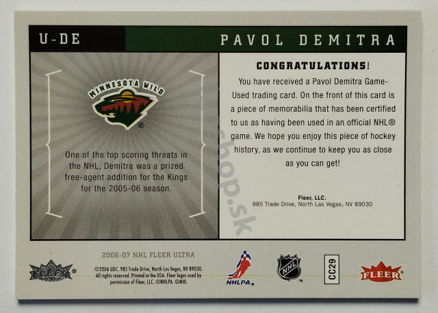 2006-07 Ultra Uniformity #U-DE Pavol Demitra