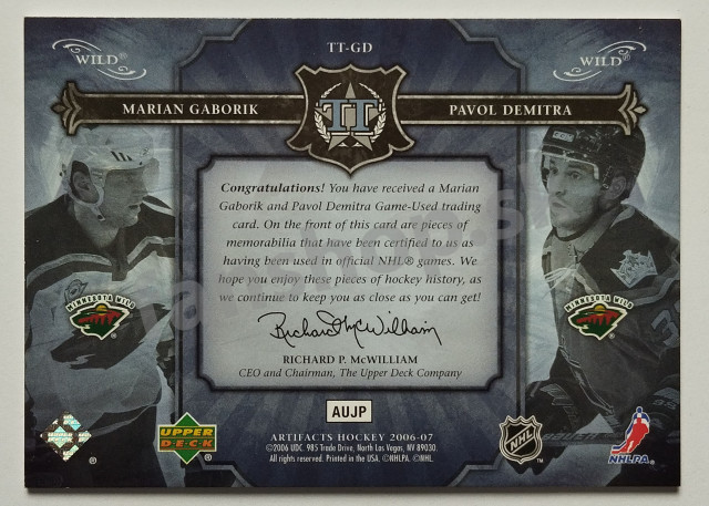 2006-07 Upper Deck Artifacts Tundra Tandems Blue #TT-GD Pavol Demitra/Marián Gáborík SN 03/25