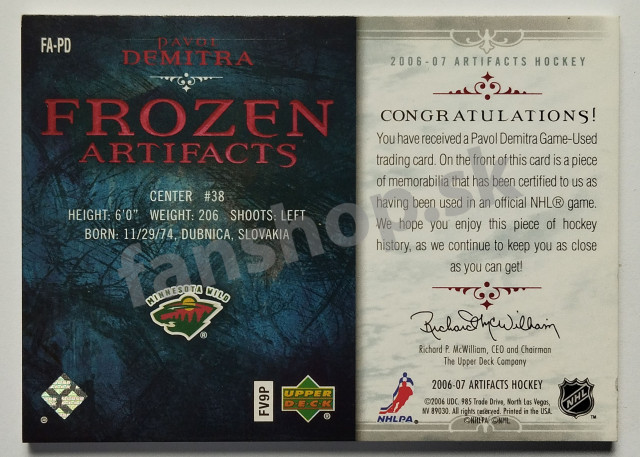 2006-07 Upper Deck Artificats Frozen Artifacts Patches Red #FA-PD Pavol Demitra SN 30/35