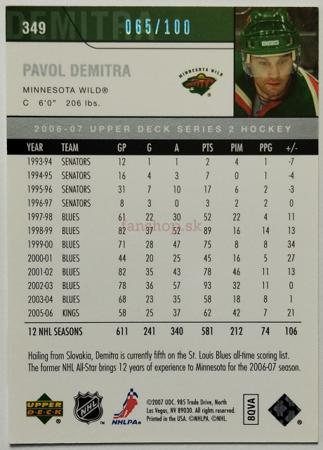 2006-07 Upper Deck Exclusives #349 Pavol Demitra SN 065/100
