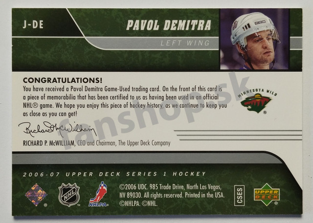 2006-07 Upper Deck Game Jerseys #J-DE Pavol Demitra