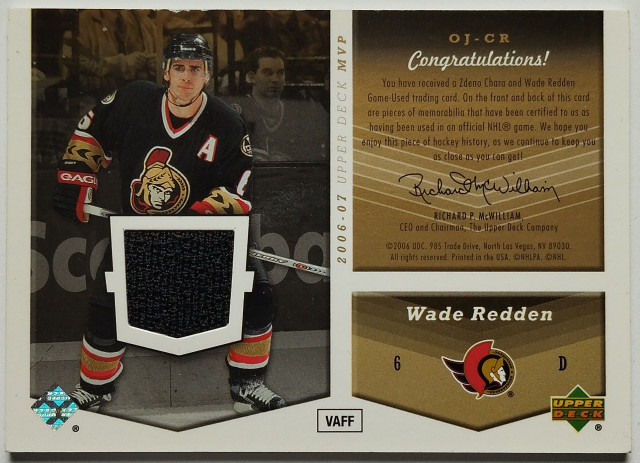 2006-07 Upper Deck MVP - One on One Jerseys #OJ-CR Zdeno Chára/Wade Redden