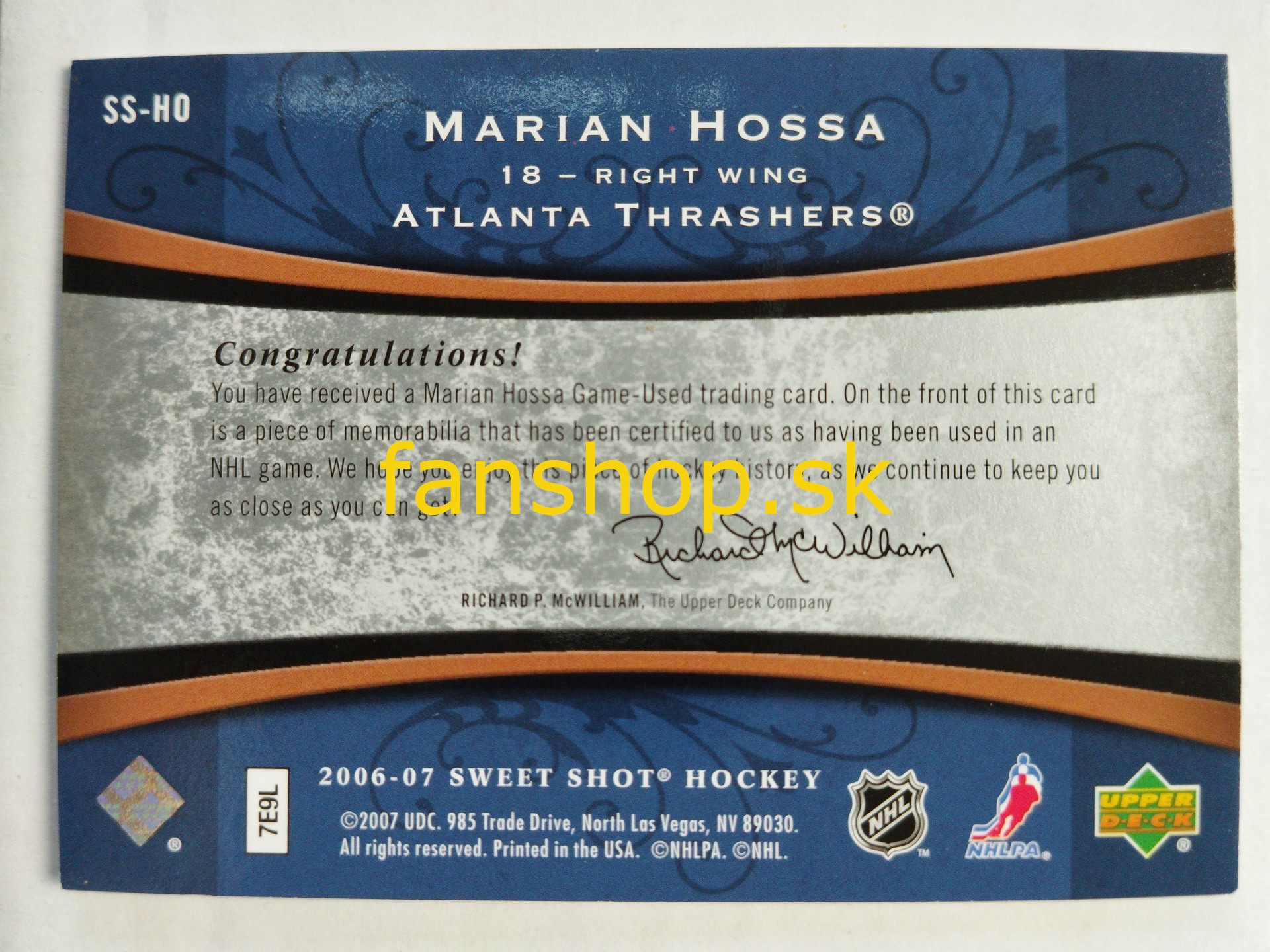 2006-07 Upper Deck Sweet Shot Sweet Stitches #SS-HO Marián Hossa SN 122/200