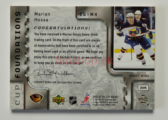 2006-07 Upper Deck The Cup - Foundations #CQ-MH Marián Hossa SN 17/25