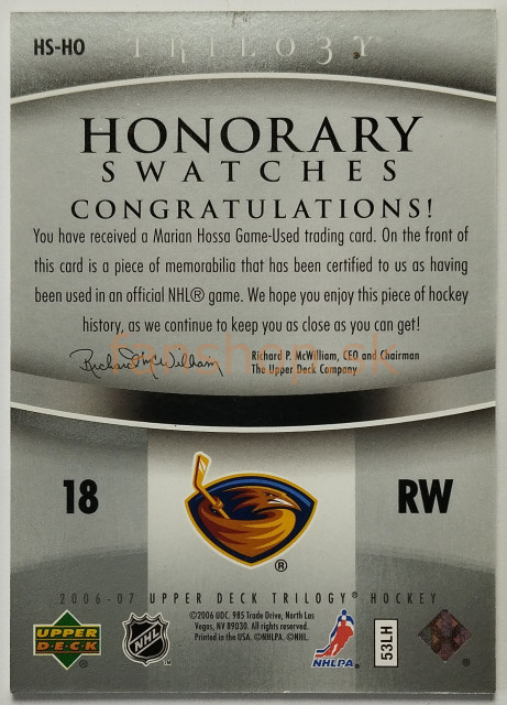 2006-07 Upper Deck Trilogy Honorary Swatches #HS-HO Marián Hossa