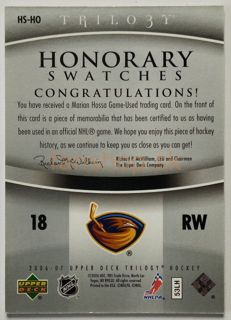 2006-07 Upper Deck Trilogy Honorary Swatches #HS-HO Marián Hossa