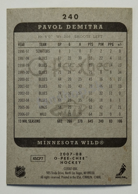 2007-08 O-Pee-Chee #240 Pavol Demitra