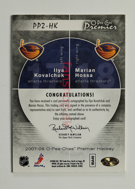 2007-08 O-Pee-Chee Premier Duos Signatures #PP2-HK Ilya Kovalchuk / Marián Hossa SN 05/75