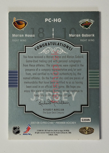 2007-08 O-Pee-Chee Premier Pairings Autographed Jersey #PC-HG Hossa / Gáborík SN 14/50