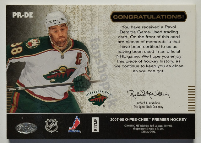 2007-08 O-Pee-Chee Premier REmnants Triples Patches #PR-DE Pavol Demitra SN 28/35