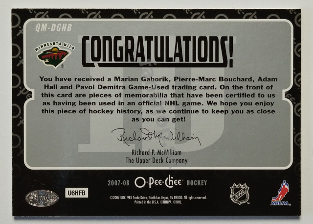 2007-08 O-Pee-Chee Quad Materials #QM-DGHB Demitra/Gáborík/Hall/Bouchard