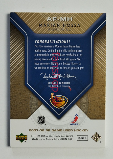 2007-08 SP Game Used Authentic Fabrics Jersey Patch #AF-MH Marián Hossa SN 41/50