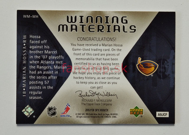 2007-08 SPx Winning Materials #WM-MH Marián Hossa