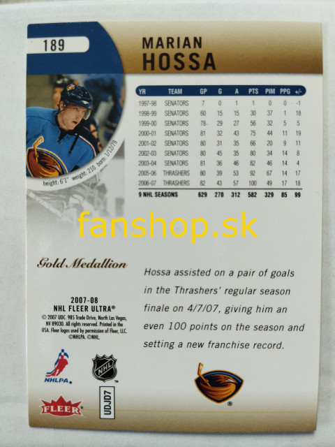 2007-08 Ultra Gold Medallion #189 Marián Hossa