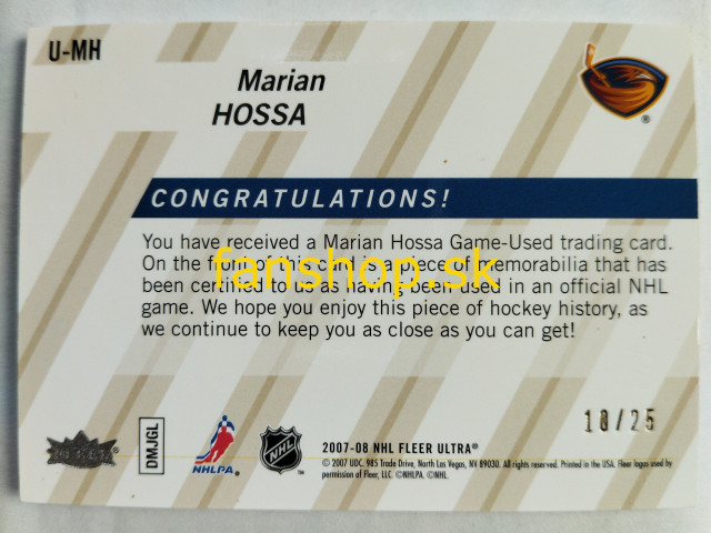 2007-08 Ultra Uniformity Patches #U-MH Marián Hossa SN 10/25