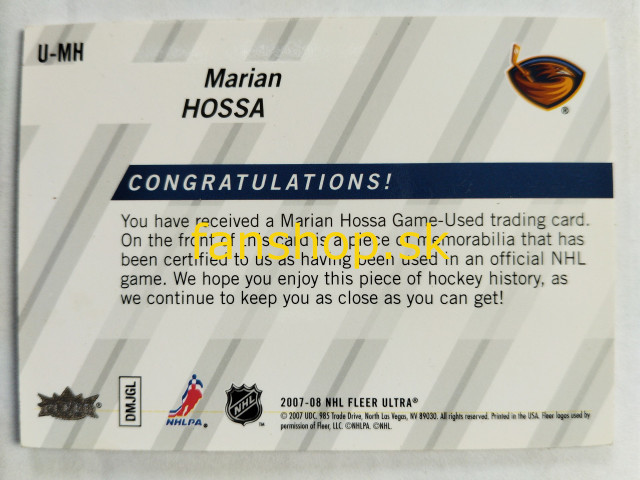 2007-08 Ultra Uniformity #U-MH Marián Hossa