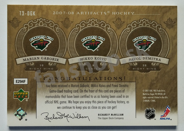 2007-08 Upper Deck Artifacs Tundra Trios Red #T3-DGK Demitra/Gáborík/Koivu SN 07/10