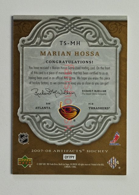 2007-08 Upper Deck Artifacts Treasured Swatches Gold #TS-MH Marián Hossa SN 50/50