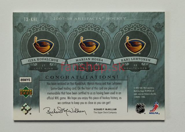 2007-08 Upper Deck Artifacts Tundra Trios Blue #T3-KHL Hossa / Kovalchuk / Lehtonen SN 35/75