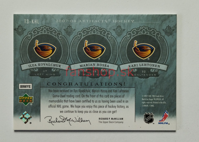 2007-08 Upper Deck Artifacts Tundra Trios Blue #T3-KHL Hossa / Kovalchuk / Lehtonen SN 68/75