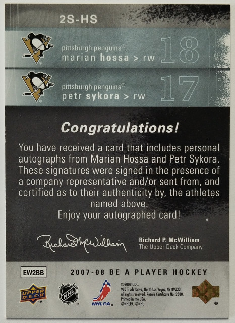 2007-08 Upper Deck Be a Plater Signatures Duals #2S-HS Marián Hossa / Petr Sýkora