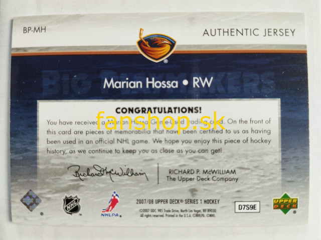 2007-08 Upper Deck Big Playmakers #BP-MH Marián Hossa SN 24/50