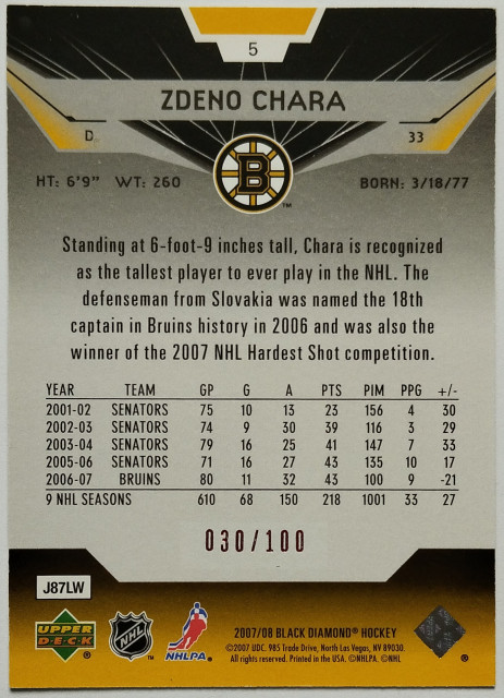 2007-08 Upper Deck Black Diamond Ruby #5 Zdeno Chára SN 030/100