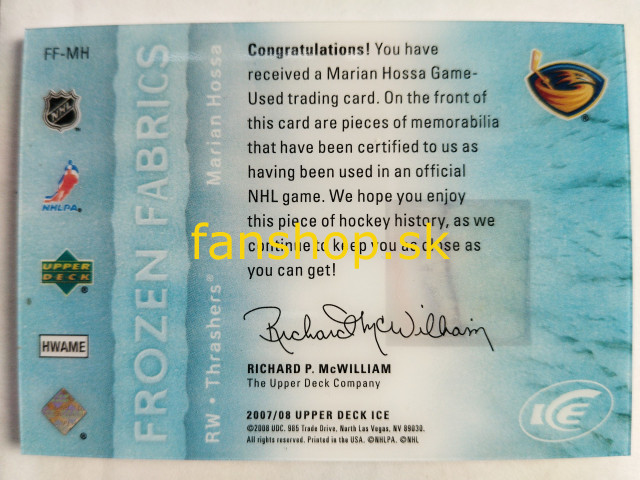 2007-08 Upper Deck Ice Frozen Fabrics Patches #FF-MH Marián Hossa SN 22/25